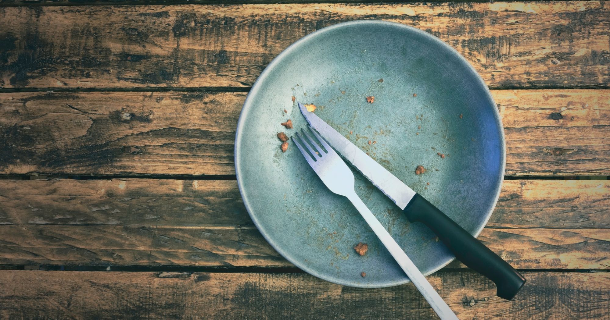 It doesn't matter if you're starving. If you're a super fast eater, try to slow down your pace to make sure you finish eating around the same time as your fellow diners. When you've finished, align your cutlery side-by-side so it points to where the number "11" would be on a clock face.