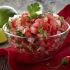 Start with a basic Salsa Fresca recipe by mixing 5 chopped tomatoes with 1 red onion. Add 1 handful of fresh cilantro and 1/2 a handful of fresh mint. The mint should add extra flavor without overpowering the cilantro. Then toss in some finely chopped fresh or canned jalapenos. You can also replace the red onion with spring onion if you prefer. Finally, season with 1 teaspoon of cumin, the juice of 1 lemon and salt to taste. Chill for 1 hour before serving so that the flavors have time to fully develop.