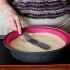 - Continue with alternating additions of each mixture until all batter is used and the tin is full.
