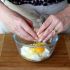 Place on baking sheet (lined with parchment paper), and press your thumb into the center.