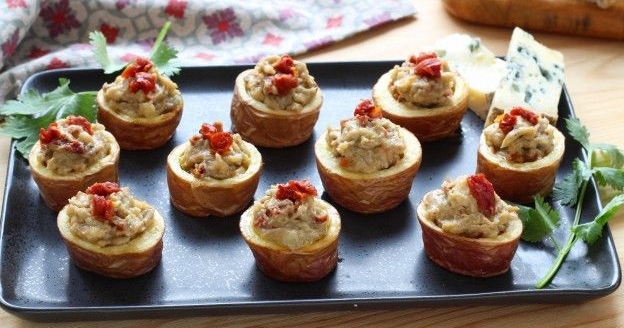 Potato Cups With Blue Cheese And Sun-Dried Tomatoes