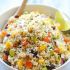 - In a bowl, toss together the mango, carrot, rocket, and lime-soy dressing.