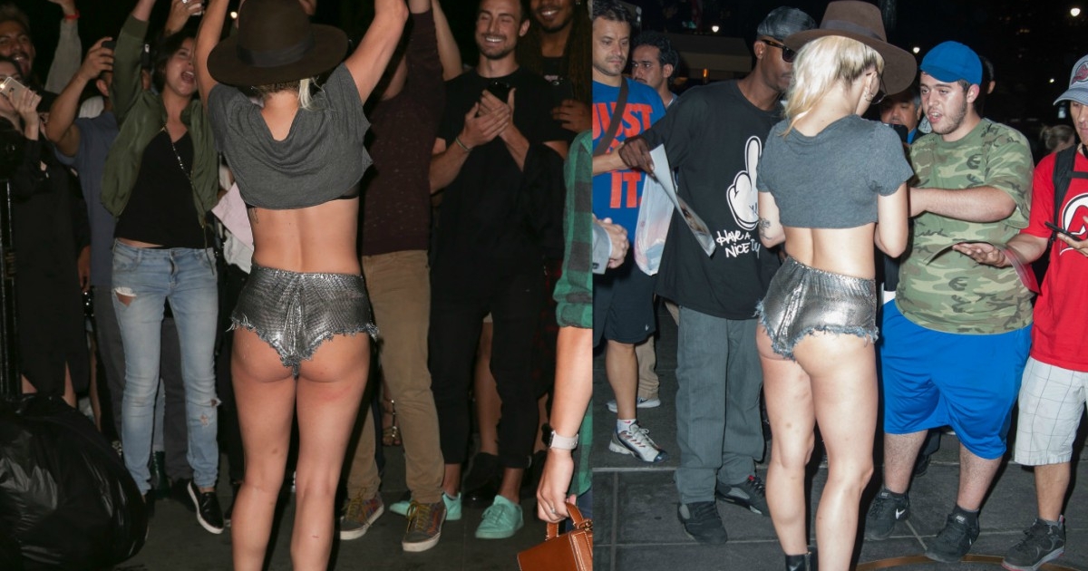 Gaga hit the streets in New York to sign some autographs, wearing a pair of seriously eye-catching micro-shorts.