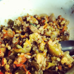 1. Cook quinoa according to package directions (Tip: Use extra vegetable stock instead of regular water for richer flavor)