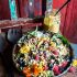 - In a bowl, toss together the mango, carrot, rocket, and lime-soy dressing.