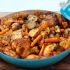 - Add the ground beef, and add the salt, water, and tomato sauce. When the meat has browned, remove from heat.