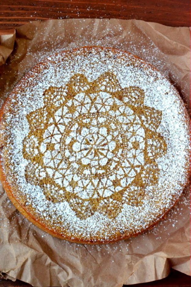 Just sprinkle some powdered sugar or cocoa over a lace doily for a gorgeous stenciled pattern on top of your cake. This tip works on both plain or iced cakes, and guarantees that "wow" effect.