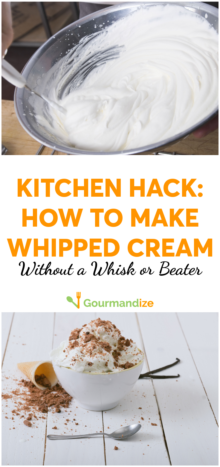 Nearly every kind of dessert can be improved with a little of dollop of whipped cream on the top, and if you've ever tried homemade whipped cream you'll know that it tastes way better than anything you can buy in a can. But what do you do when you have a dessert all baked and ready and realize you don't have a whisk anywhere around your kitchen? Or when you just don't feel like cleaning the mixer yet again, after all your hard work already?
