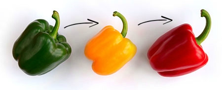 Yes, everything you thought was a lie. The different colors don't mean they're different types of peppers... It's all the same vegetable, just in different phases of ripening.