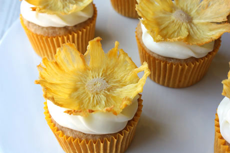 These pineapple flowers go beautifully on both bakes and cupcakes, and you can even float them on top of ice teas and drinks. Bring them to a party, and you will have an unforgettable dessert that your friends will be talking about for years to come.
