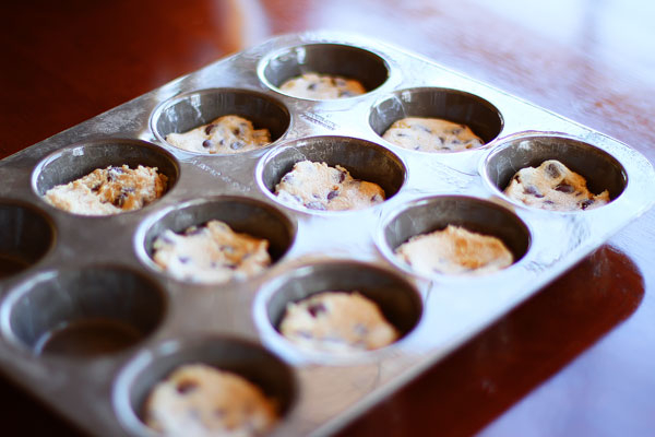 Scoop out your cookies as your normally would. Just place each one into their own muffin cup and flatten at the bottom. This will prevent the cookies from spreading and melding into each other. It will also give your cookies a more uniform shape and a softer texture.