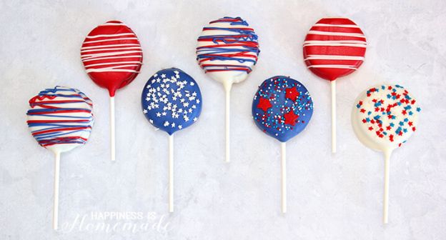 Whether you're hosting a party or just need a quick treat to bring along to someone else's, these little Oreo pops are sure to impress and will fit right in with all the other red, white, and blue decor.
