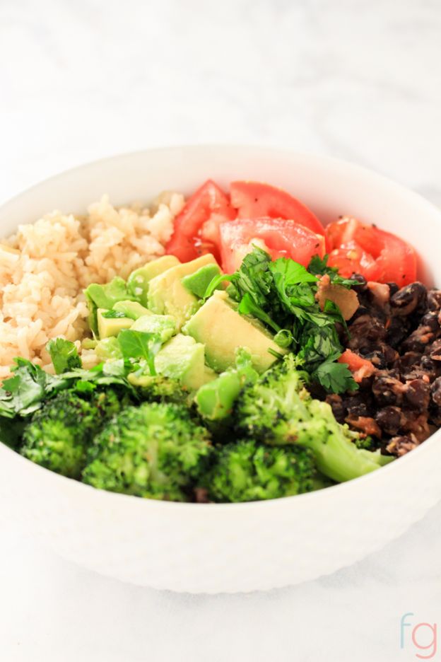This Buddha bowl is quick, easy, AND vegan-friendly. Just use leftover rice and a mix of frozen and leftover veggies. Packed with fiber and nutrients, this meal will leave you feeling energized and satisfied. Get the recipe here!
