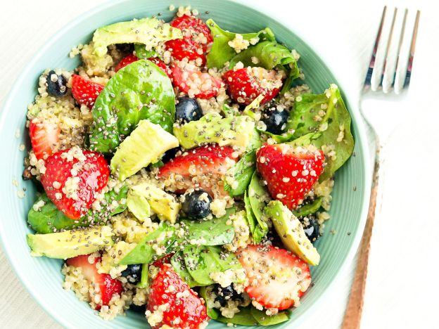 You will love this vitamin-rich power bowl that's perfect for hot summer months. Fresh strawberries and blueberries combined with spinach and chia seeds - what's not to love? Get the recipe here!