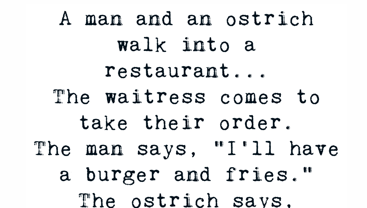 The man and the ostrich return to the restaurant the next day. This time the man orders a steak. The ostrich says, "I'll have the same." The waitress tells him the total is $25.62. Again the man reaches into his pocket and pulls out the exact amount without looking.
