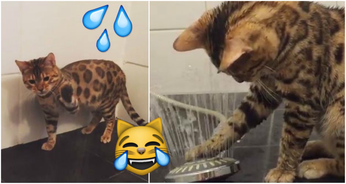 This Bengal Cat Loves Water... Watch How He Reacts To The Shower!