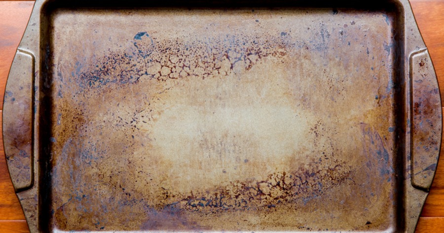 The good news: there's an easy way to clean sheet trays that will get rid of the brown stuff and leave them looking good as new! Here's how to do it:
