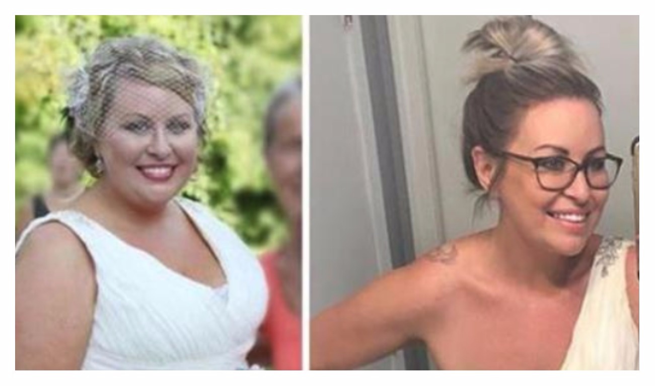 She lost 92lb, and is now swimming in her size 22 wedding dress