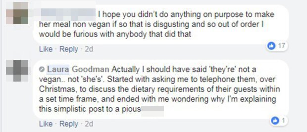 Goodman began to receive the negative comments, reviews, and threats when she boasted on Facebook that she had ‘spiked a vegan a few hours ago’.