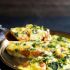 - Layer cheddar, blue, and mozarella cheese inside the bread