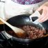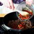 - Add the ground beef, and add the salt, water, and tomato sauce. When the meat has browned, remove from heat.