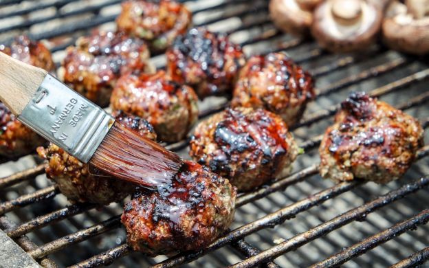 Ground veal forms the base of these incredibly tasty grilled meatballs that get brushed with a sweet teriyaki-honey glaze when they're done cooking. Get the recipe here.