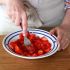 - Place the bar of chocolate in the center, then top with a layer of strawberry halves.