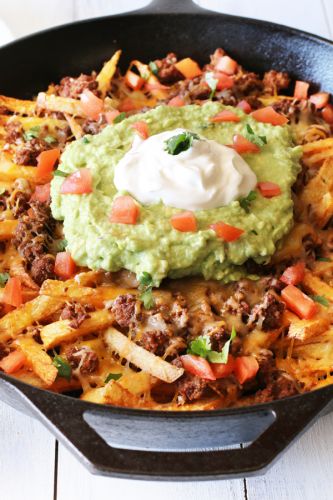 When it comes to making nachos, French fries work just as well as (if not better than) tortilla chips. Loaded with classic toppings such as cheese, tomatoes, sour cream, onions, etc., they're even more filling than their chip-based counterpart. Get the recipe here.
