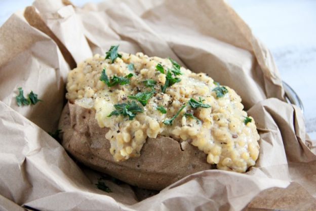 Cheesy, filling and healthy, these easy-to-make lentil-stuffed baked potatoes are packed with protein and can even serve as a lighter vegetarian main. Get the recipe here.