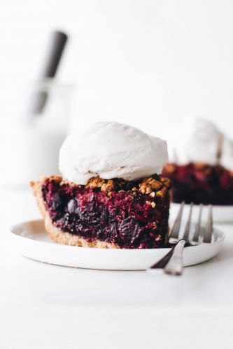 Serve up a slice of Americana with this eggless cherry pie. Topped with a crunchy oat streusel, it's packed with cherries and has the perfect balance of sweet and tart flavors. Get the recipe here.