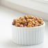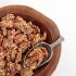 Start by mixing the dry ingredients together in a salad bowl: oatmeal, flour, baking powder, crushed cashew nuts and pieces of dried figs.
