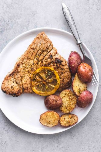 In this recipe, tuna steaks become tender and flaky in the oven. Seasoned with herbs, spices, and lemon slices, this dish is ready in just 30 minutes. After tasting this tuna, you might have a hard time going back to the canned stuff.