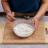 3. Press the balls into ramekins lined with parchment paper, and press the rice up the sides of the ramekins into cup shapes.