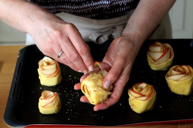 4. To get the first row, line up the apples in a straight line and cut out the section. Continue until all the dough is all used up.