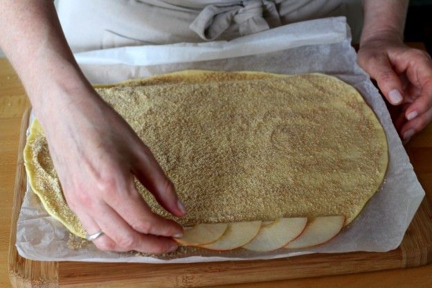 4. To get the first row, line up the apples in a straight line and cut out the section. Continue until all the dough is all used up.