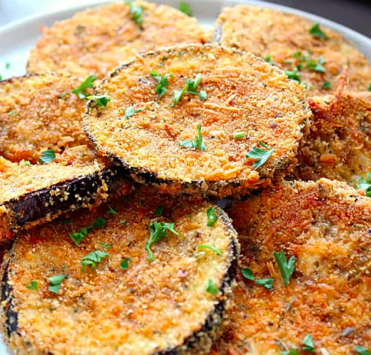 Breadcrumbs, parmesan cheese, and garlic powder give this simple side its unstoppable flavor. Skip the deep fryer and head straight to the oven for a healthier, but no less crispy, battered eggplant. Get the recipe here.