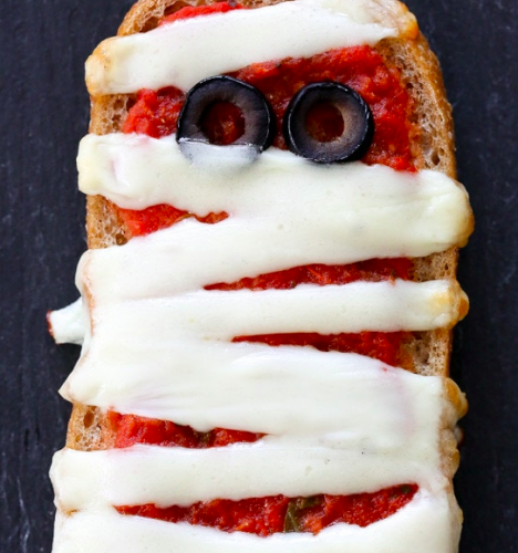 Craving pizza? No need to shop for pizza dough when you've got a loaf of French Bread hanging out in the breadbox. Delight kids and fun-loving adults alike by adding two slices of black olives as eyes to create the faces of these whimsical pizza mummies. Get the recipe here.