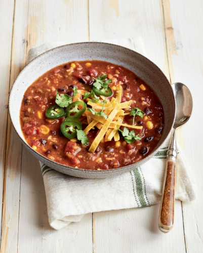 Cozy tortilla soup is just as delicious with or without the meat, and this crockpot-friendly recipe proves that. It's made with 100% pantry ingredients, too—the only fresh ingredients are the toppings you choose to load up on.