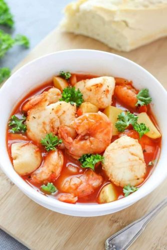 When you're in the mood for a cozy yet light meal, turn to this slow cooker recipe for seafood stew. Filled with your favorite seafood (shrimp, scallops) and potatoes in a yummy tomato-based broth, it's a no-fuss meal you'll love.