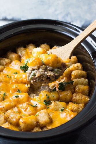 Bacon Cheeseburger Crock Pot Tater Tot Casserole