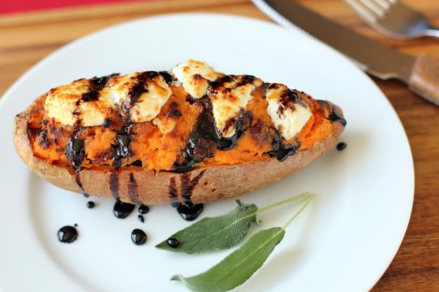 Tangy goat cheese is stirred into the sweet potato filling for these twice-baked potatoes, along with tart cranberries, savory pancetta and fresh sage. With extra crumbled goat cheese melted on top and a lovely balsamic glaze, these are definitely worthy of your next special occasion dinner. Get the recipe here.