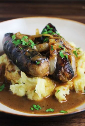 This classic British dish is hearty, stick-to-your-ribs good, and guaranteed to please the whole family. Silky mashed potatoes are served with sausages in a sweet and savory gravy, for an easy dinner that's ready in less than 30 minutes. Get the recipe here.