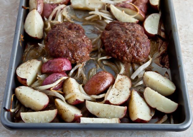 Here's another 2-in-1 meat and potatoes recipe that makes an old-fashioned dinner fave even easier to prepare. Homemade Salisbury steaks and diced potatoes bake together for an easy weeknight dinner ready in just 40 minutes.