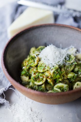 Broccoli transforms into a tasty, creamy pasta sauce with a handful of basic ingredients in this easy dish. Paired with orecchiette pasta, it's a genius way to get your kids to eat their veggies. Get the recipe here.