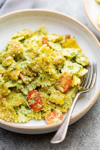 Some like it hot—and others like it really really hot. This pasta is for the latter group, as it's got an amazing kick of heat from 5 whole deseeded jalapenos in the delicious creamy pesto sauce. Get the recipe here.