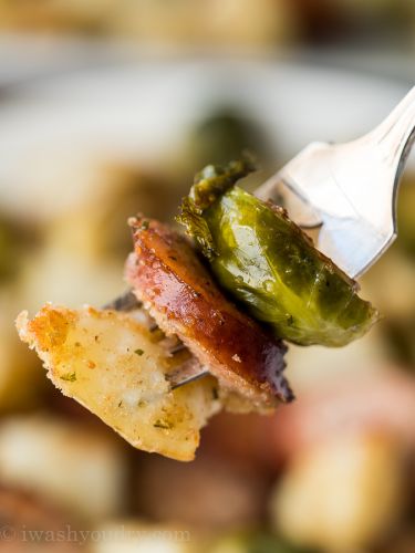 Potatoes, brussels sprouts, and kielbasa sausage are cooked in an Italian-inspired herbed parmesan crust in this recipe. The meat and veggies are wonderfully crisp on the outside, but the inside remains tender and flavorful.