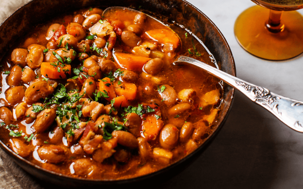 Cranberry beans, also known as borlotti beans/romano beans (and a bunch of other names), pair with thick-sliced bacon in this hearty soup that will warm your belly on the chilliest of days. Its stew-like texture also makes it the perfect candidate for sopping up with crusty bread. Get the recipe here.