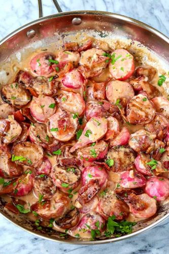 Have you ever tried cooking radishes? Doing so helps remove the raw root veggie's naturally bitter flavor, leaving them slightly sweet and adaptable to plenty of dishes. In this recipe, they're paired with a tempting bacon cream sauce that will guarantee everyone in the family eats their veggies.