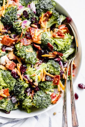 Make broccoli fun to eat again by using it as the base of a delish salad dish with salty bacon, cheddar cheese, dried cranberries and more. Tossed in a creamy 3-ingredient dressing, it's got all the help it needs in the flavor department. Get the recipe here.