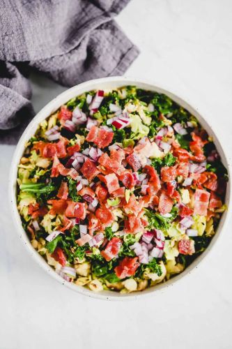 Healthy and satisfying, this Brussels sprouts bacon salad is exactly what you need to get your greens in without feeling deprived. Superfood kale sneaks in there for extra nutrition, while red onions add a nice bite to round out the flavors. Get the recipe here.